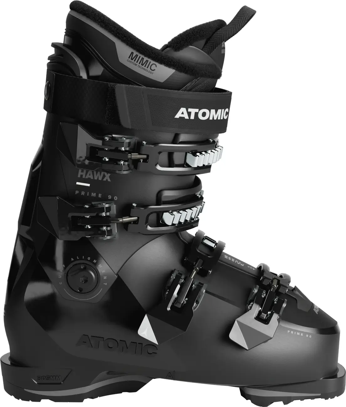 For all-mountain skiers with medium-width feet, the Atomic Hawx Prime 90 has a versatile, mid-volume 100mm last with a soft, forgiving 90 flex. Engineered with Prolite, Atomic’s next-generation construction with strategic reinforcements in key zones, this alpine ski boot provides more power and stability with less weight on your feet. Energy Link at the back of the boot enhances the connection between cuff and shell, providing responsiveness through every turn. A supportive Mimic Bronze liner cushions the heel and ankle for a comfortable fit. The 3D Stretch Toe Box provides extra length in the big toe area, while the Adaptive Fit System (AFS) Cuff spoiler can be removed to create additional space around the calf. The highly adaptable Hawx Prime 90 is a fantastic entry point into the medium volume 100mm world of Atomic Hawx Prime boots.