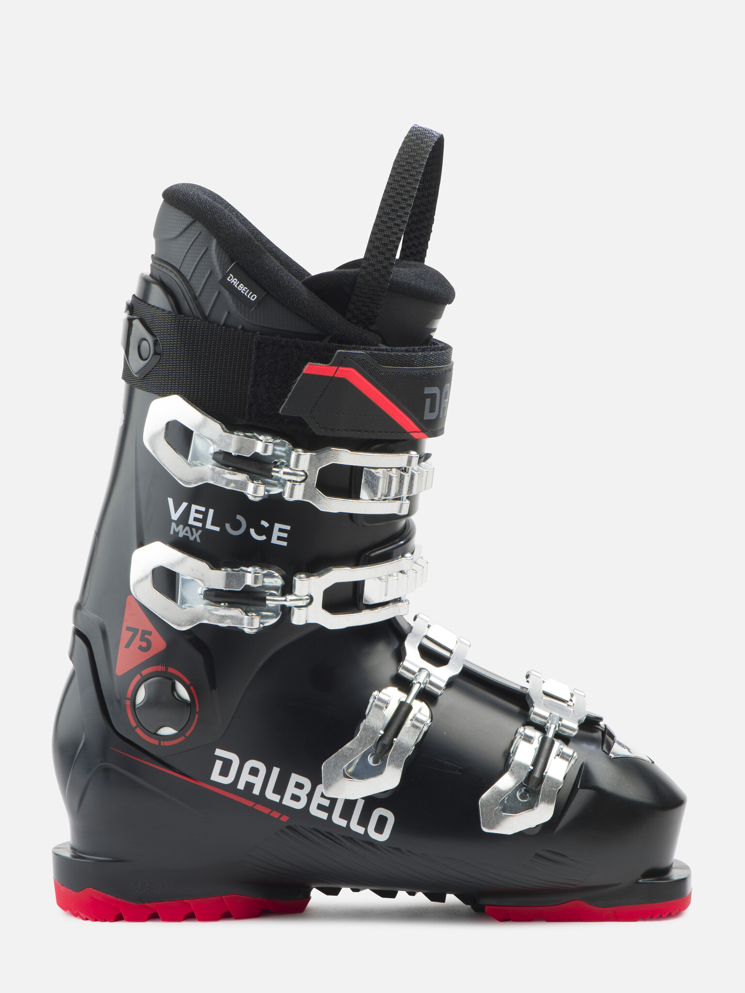 Proof that boots can offer both performance AND comfort! The VELOCE MAX 75 is suitable for advanced skiers looking for a wider boot that still offers firm hold and good control. The combination of a flex index of 75, the high overlap design, and the power plate results in direct power transfer and precise control during turns. The wide cuff makes the step-in and handling easier. Dalbello’s MyFit technology enables the thermoformable Instant Fit liner and shell to be adapted to meet individual requirements if necessary. The factory-fitted GripWalk soles allow the foot to roll more naturally when walking and offer improved grip on snow and ice.