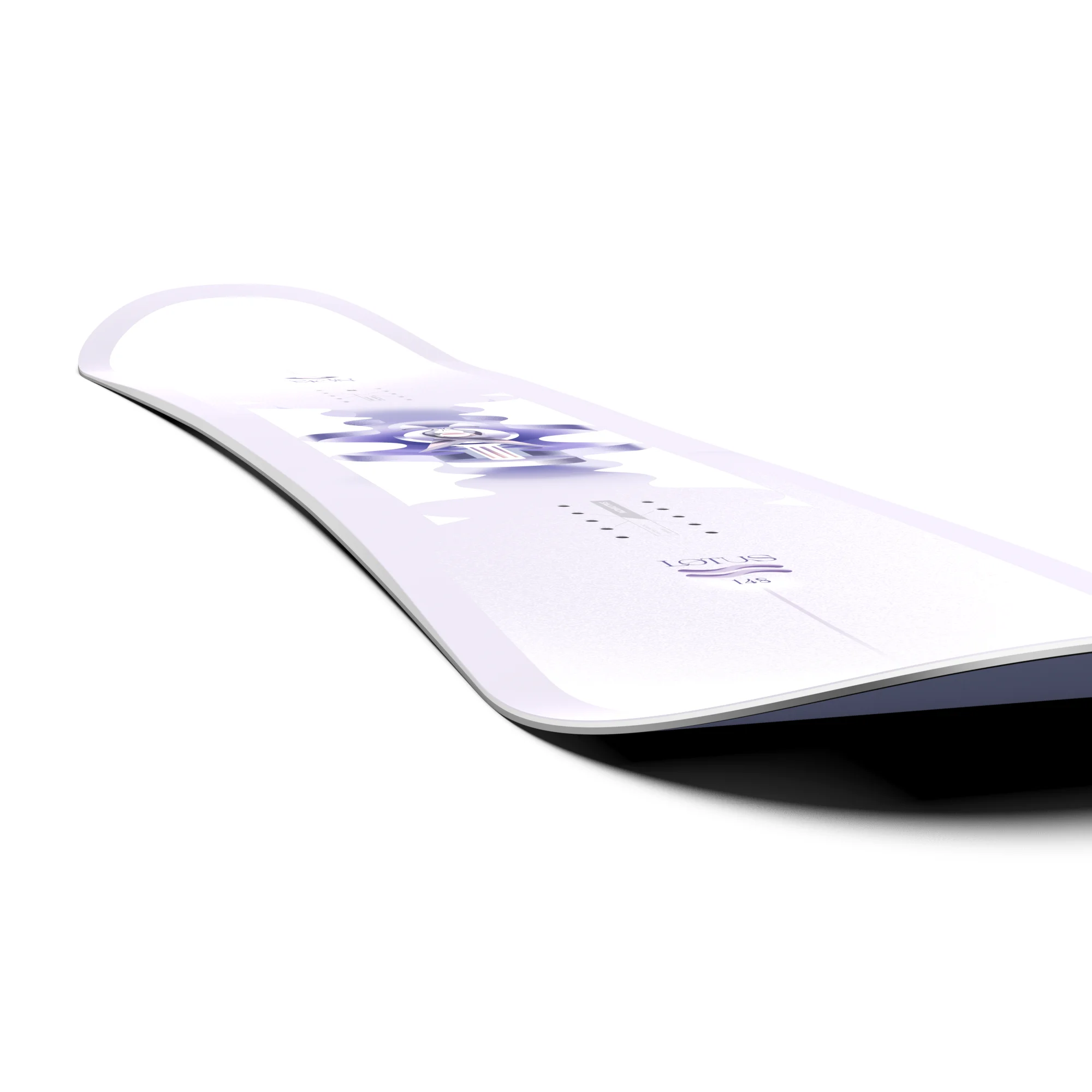The Lotus snowboard features a soft flex and a forgiving profile, facilitating progression and lowering consequences for beginners. This directional twin features Bite Free Edges for a catch free ride.